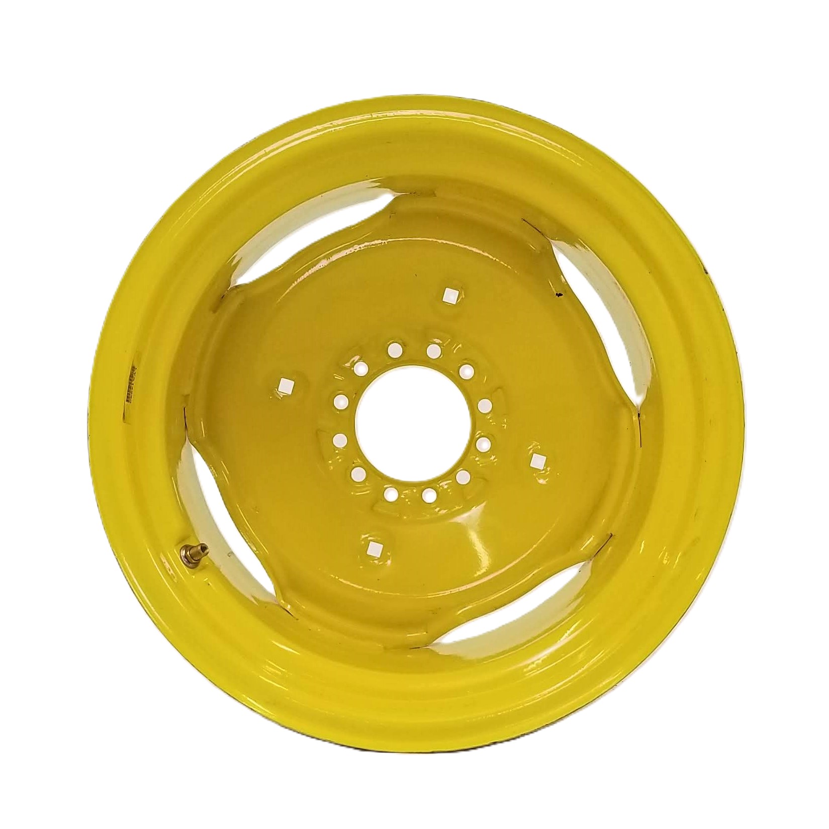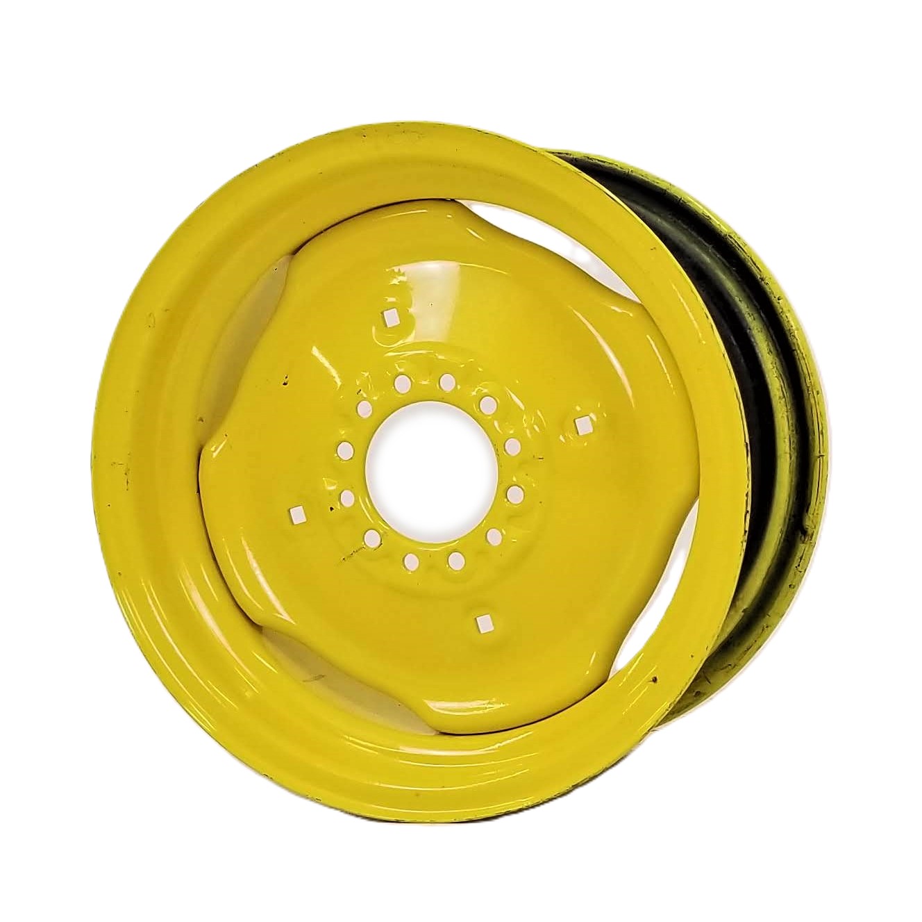 This is a new wheel which may have previously been installed on equipment or on which a tire may have been mounted.